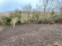 The three Tiny Forests have each been sited where there is little chance of developing or extending our wild flower meadows. All three sites had been overtaken by brambles, (we have plenty of brambles), are damp, and partially shaded. In each case the site was cleared and dug over by hand, removing large quantities of ancient roots, then and mulched with waste cardboard topped with wood chippings and leaves.